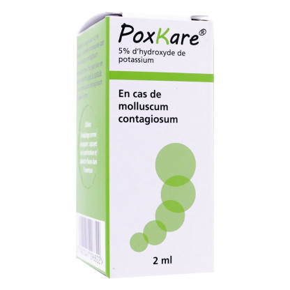 POXKARE 5% MOLLUSCUM CONTAGIOSUM 2ML agit en ciblant directement les lésions, permettant ainsi d'améliorer l'apparence de la peau de manière significative. Son application facile et précise garantit un confort d'utilisation optimal, tout en évitant les irritations. L'hydroxyde de potassium va provoquer une petite inflammation indolore, dont la disparition est signe de guérison des Molluscum contagiosum..