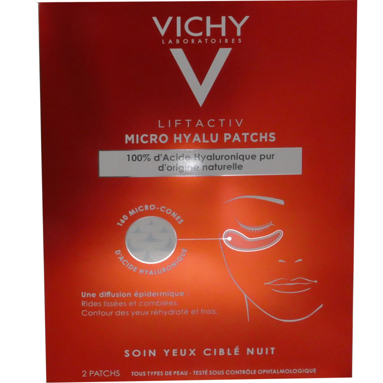 VICHY a conçu une gamme de soins pour le visage destinés à lutter efficacement contre les effets de vieillissement, rides profondes et perte de fermeté, tout en offrant un effet lifting durable : LIFTACATIV. Micro-hyalu patchs Yeux LIFTACTIV est un soin liftant nocturne sous forme de patch, conçu pour défatiguer le regard et lui offrir un coup d’éclat au réveil. Ce soin est composé de 160 micro-cônes d’acide hyaluronique pur pour repulper et lisser l’épiderme, et lifter afin de réduire et combler les rides tout en hydratant en profondeur. Résultat : la peau est lissée, les rides sont atténuées, le regard frais gagne visiblement en jeunesse, au réveil ! Non comédogènes et hypoallergéniques