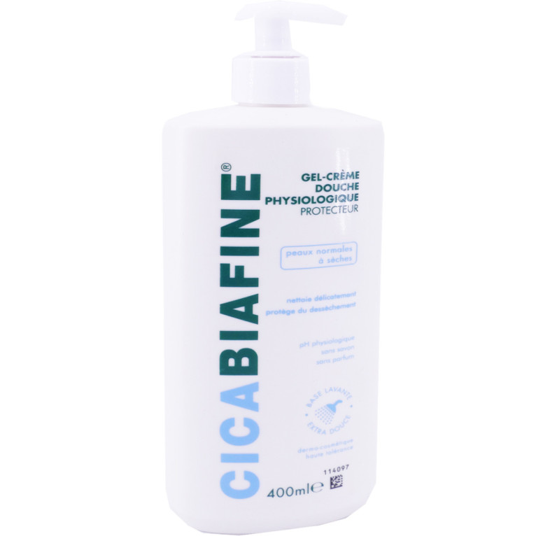 La gamme Cicabiafine du laboratoire BIAFINE propose des soins réparateurs et ultra-hydratants pour les peaux sèches, très sèches et abîmés du visage et du corps. Le gel-crème douche physiologique de Cicabiafine est un gel douche haute tolérance sans savon, sans parfum et au pH physiologique qui va nettoyer les peaux normales à sèches tout en douceur. Sa texture gel-crème qui sous la douche se transforme en mousse onctueuse procure des sensations de réconfort et va protéger la peau de la sécheresse cutanée. Après chaque douche la peau est protégée, propre et plus douce.