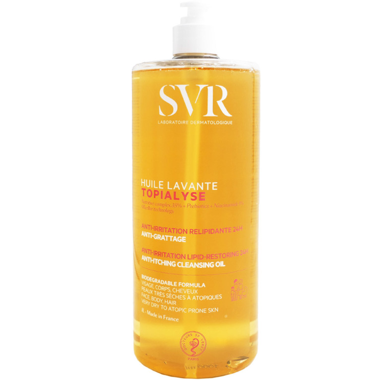 TOPYALISE Huile lavante Micellaire de SVR à prix discount, le soin d’hygiène quotidienne dans votre parapharamcie en ligne, formulé pour la toilette des peaux très sèches à tendance atopique de toute la famille (nourrissons à adultes). Corps, visage, cheveux