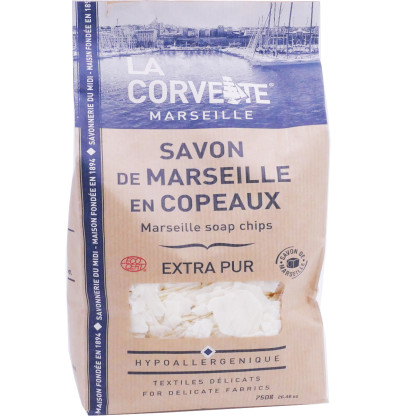 Savon de Marseille en Copeaux Extra pur discount LA CORVETTE, le savoir-faire de tradition depuis 1894 dans votre parapharmacie en ligne discount, dans un savon incontournable pour réaliser soi-même sa lessive et laver son linge de façon écologique et économique.