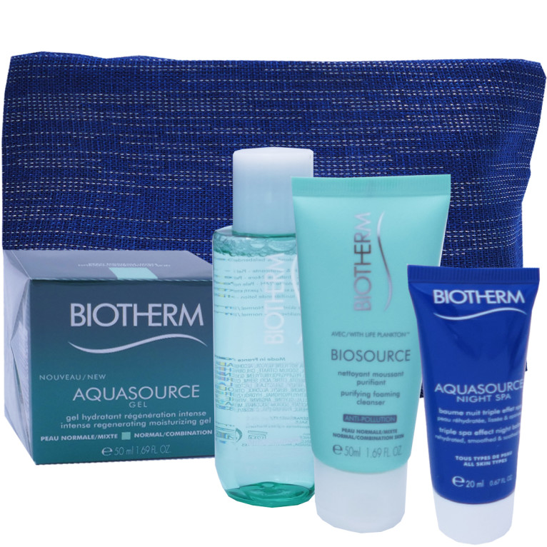 Le Coffret Aquasource pour Peaux normales à mixtes de BIOTHERM à prix discount dans votre parapharmacie en ligne, se compose de 4 produits ultra-hydratants réunis dans une trousse pour une hydratation intense et continu jour et nuit : Aquasource Gel hydratant (50ml) ; Aquasource Night spa (20ml) ; Biosource Nettoyant moussant purifiant (50ml) et Biosource Lotion tonifiante hydratante (100ml). Visage