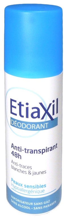 Les produits ETIAXIL du laboratoire COOPER sont destinés à combattre les problème de transpiration excessifs des aisselles et des pieds. Le déodorant anti-transpirant 48H en vaporisateur sans gaz respecte la peau en éliminant et prévenant les mauvaises odeurs, tout en laissant respirer la peau sans bloquer le processus naturel et rafraîchit la peau grâce à ses actifs anti-transpirants. Il ne laisse ni traces blanches ni traces jaunes sur les vêtements. Les aisselles sont fraiches et confortables pendant 48 heures.