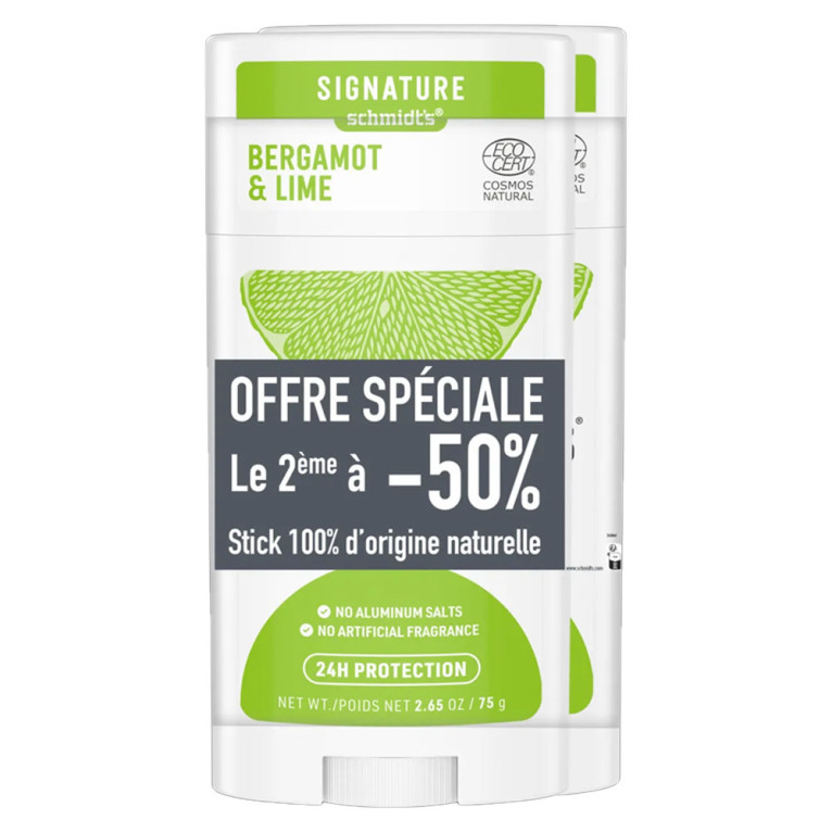 SCHMIDT'S DEODORANT STICK BERGAMOTE ET CITRON VERT 2X75G
