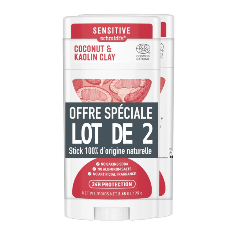 Déodorant stick Coconut & Kaolin Clay discount de SCHMIDT’S, le déodorant en stick anti-transpirant naturel dans votre parapharmacie en ligne à prix discount, qui laisse les aisselles saines et parfumées tout au long de la journée.