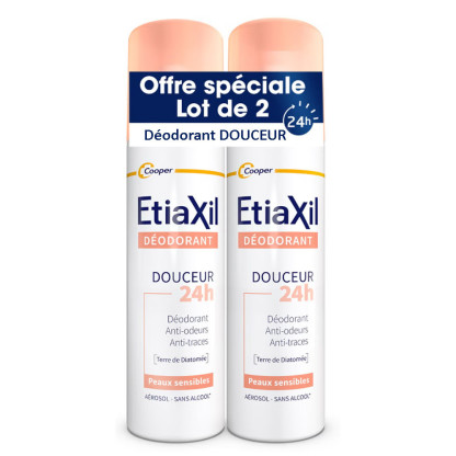 Les produits ETIAXIL du laboratoire COOPER sont destinés à combattre les problèmes de transpiration excessifs des aisselles et des pieds. Le déodorant douceur peaux sensibles en spray respecte la peau même la plus sensible en éliminant et prévenant les mauvaises odeurs par son action antibactérienne, tout en laissant respirer la peau sans bloquer le processus naturel et adoucit la peau grâce à la terre de diatomée (actif anti-transpirant) et à un complexe végétal antihumidité (prêle, sauge). Sa texture légère permet de ne pas laisser de traces blanches ou jaunes sur les vêtements. Les aisselles délicatement parfumée aux senteurs d’agrumes, sont fraiches et confortables pendant 24 heures. Testé sous contrôle dermatologique hypoallergénique Sans alcool, sans aluminium et sans paraben.
