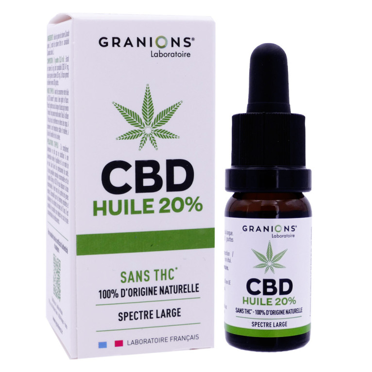 L'huile de CBD 20% des laboratoires GRANIONS est à large spectre sans THC et contient tous les composés du chanvre. Le CBD, également connu sous le nom de cannabidiol, est donc extrait de plantes de chanvre sélectionnées avec soin. L'huile CBD est composée d'un mélange d'huile végétale et d'extraits de chanvre qui contient du CBD. En choisissant cette huile de CBD, vous optez pour un produit de qualité supérieure, fabriqué avec des ingrédients rigoureusement sélectionnés. Son format pratique de 10ml en compte-gouttes vous permet de l'emporter partout avec vous, pour une utilisation quotidienne facile. Commandez-la dès aujourd'hui sur notre site de vente en ligne et bénéficiez de prix avantageux.