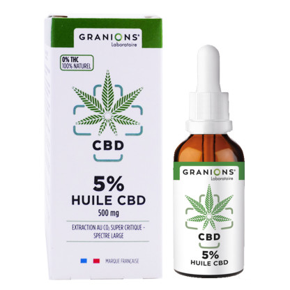 L'huile de CBD 5% des laboratoires GRANIONS est à large spectre sans THC et contient tous les composés du chanvre. Le CBD, également connu sous le nom de cannabidiol, est donc extrait de plantes de chanvre sélectionnées avec soin. L'huile CBD est composée d'un mélange d'huile végétale et d'extraits de chanvre qui contient du CBD. En choisissant cette huile de CBD, vous optez pour un produit de qualité supérieure, fabriqué avec des ingrédients rigoureusement sélectionnés. Son format pratique de 10ml en compte-gouttes vous permet de l'emporter partout avec vous, pour une utilisation quotidienne facile. Commandez-la dès aujourd'hui sur notre site de vente en ligne et bénéficiez de prix avantageux.