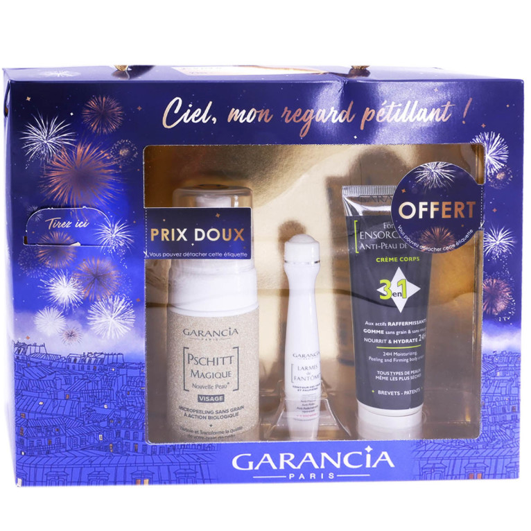 Le coffret « Ciel Mon Regard Pétillant ! » à prix discount de GARANCIA, magie et beauté dans un coffret qui regroupe 3 soins pour retrouver un regard frais qui pétille et une peau belle et toute douce dans un rituel ensorcelant ! Pschitt Magique Visage (100ml), Larmes de Fantôme (10ml) et Formule Ensorcelante Anti-Peau de Croco (75g) offert. Un beau coffret à offrir ou à se faire offrir pour être belle toute la journée ! Visage et Contour des yeux