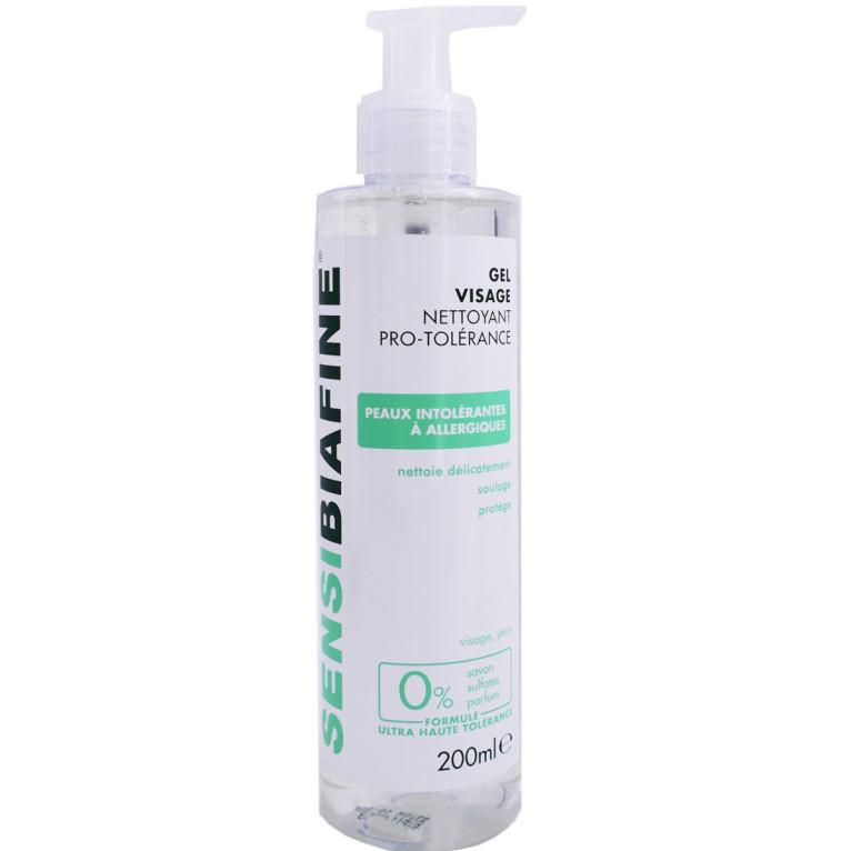 Sensibiafine Gel Visage Nettoyant Pro-tolérance discount de BIAFINE le soin d’hygi-ne protecteur et apaisant de toutes les peaux même sensibles intolérantes ou allergiques du visage et des yeux, à prix discount dans votre parapharmacie en ligne.