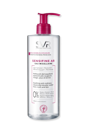 L’Eau micellaire Sensifine de SVR est un soin d’hygiène complet pour nettoyer en douceur et éliminer les impuretés et toutes traces de maquillage même résistantes, des peaux réactives et intolérantes. Ce soin à haute tolérance cutanée et au pH lacrymal pour le plus grand respect de la peau et des yeux, hydrate et calme les sensations de tiraillements et d’échauffement, pour une peau nette et apaisée grâce à sa richesse en niacinamide aux propriétés réparatrices. Il contient également des agents hydratants pour une peau protégée des rougeurs et inconforts. Testé sous contrôle dermatologique et ophtalmologique convient au porteurs de lentilles. Sans parfums, sans colorants, sans conservateurs, sans alcool, sans huile minérale