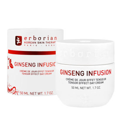 Ginseng infusion d’ERBORIAN est une crème magique qui atténue les signes de l’âge, répare la peau en profondeur pour la rendre plus élastique, active la micro-circulation, et nourrit intensément grâce à la science ancestrale de l'herboristerie coréenne qui est composée de ginseng rouge coréens de 6 ans d’âge, brevet Erborian. Sa texture riche mais légère en fait un soin très agréable pour une pénétration des actifs dès l’application. La peau est éclatante de beauté, plus jeune et plus lisse.