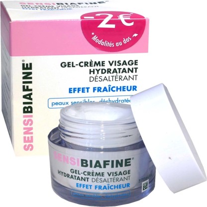 La gamme Sensibiafine du laboratoire BIAFINE propose des soins réparateurs et hydratants pour tous les types de peaux du visage irritées ou à rougeurs par sa formule essentiellement composée d’avenanthramide. Le Gel-crème Hydratant désaltérant à la texture fondante non grasse vite absorbée, répare la peau en reconstituant le film protecteur, repulpe la peau, et hydrate intensément grâce à sa richesse en acide hyaluronique, ainsi qu'à la glycérine. La peau retrouve instantanément son confort et sa fraîcheur. Jour après jour la peau retrouve douceur et souplesse, elle est repulpée. Sans parfum, non comédogène hypoallergénique, développée sous contrôle médical et testée cliniquement