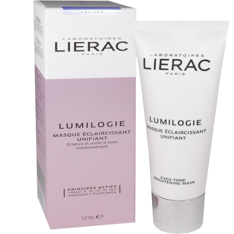 LIERAC est la première marque française dermo-cosmétique spécialisée dans la correction du vieillissement et des désordres cutanés, et instauratrice de la « cosmétique technique » qui allie plaisir des sens et efficacité. La gamme LUMILOGIE est constituée de produits inspirés des techniques esthétiques combinées LED & PEELING qui vise à corriger les taches pigmentaires de la peau pour redonner de l’éclat. LUMILOGIE Masque Eclaircissant Unifiant est un soin global très concentré qui va agir sur l’uniformité du teint en éclaircissant les 3 types de taches pigmentaires : naissantes, visibles et incrustées. Il contient 3 actifs aux forts pouvoirs éclaircissants : Hexyl R, Lys de mer, et Extrait de plantain, qui vont agir sur les taches naissantes en limitant la surproduction de mélanine responsable de la couleur de la peau, agir sur les taches visibles en diminuant la production de mélanine et en bloquant le transfert sur la surface de la peau, et agir sur les taches incrustées en reconstruisant le tissu de soutien épidermique pour lutter contre l’incrustation de la mélanine en profondeur. Il contient également une enzyme peeling qui va agir comme un peeling en suractivant le renouvellement cellulaire pour éliminer l’excès de mélanine à la surface de la peau. Sa texture onctueuse comme une crème et délicate comme une mousse laissera la peau est fraîche et délicatement parfumée aux notes florales et pétillantes dès la première utilisation, et un teint unifié,. Jour après jour les taches s’effacent.