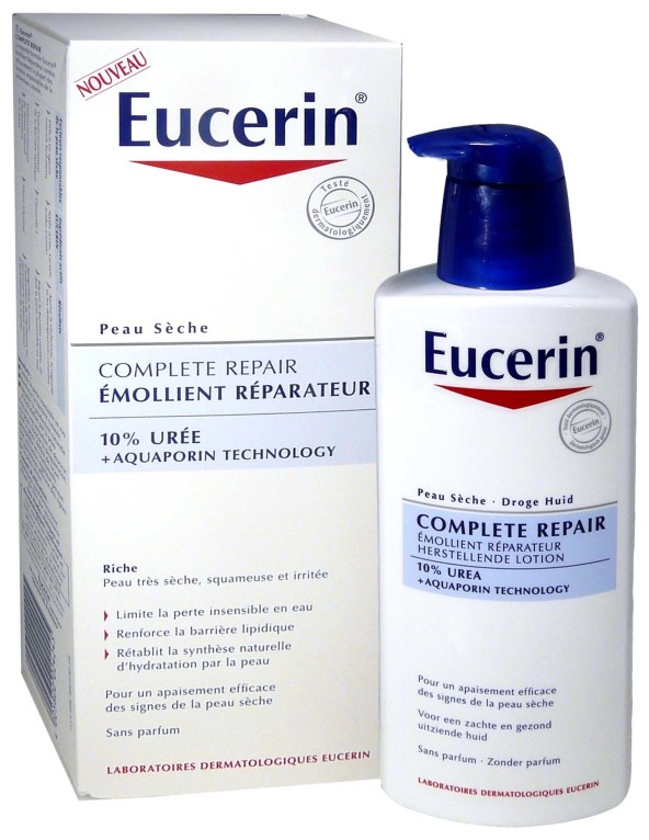 Les produits EUCERIN sont des soins « cosméto-médicaux » qui allient des produits réparateurs et de soins pour tous les types de peaux. Le lait COMPLETE REPAIR réactive le système d’hydro-fixation de la peau et rétablit la fonction des canaux d’hydratation qui permettent une bonne hydratation des cellules de l’épiderme en reformant les aquaporines afin de lutter contre l’évaporation et lutter contre les substances irritantes qui provoquent des sensation de démangeaisons grâce à 2 agents naturels : l’urée dosée à 10% et le céramide 3, associé au gluco-glycerol. Sans colorant et sans parfum, elle respecte la peau même la plus sensible. Sa texture riche pénètre rapidement pour un confort instantané. La peau retrouve tout son confort et sa douceur sans tiraillements et est bien hydratée pour une protection optimale.