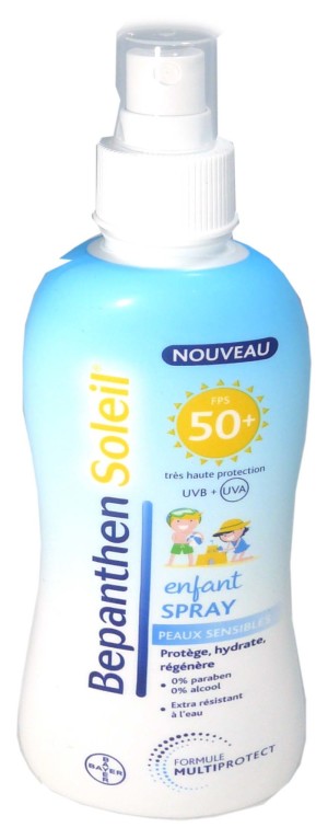 La gamme BépanthenSoleil de BAYER est composée de soins solaires et après-solaires haute tolérance pour protéger et apaiser les peaux délicates, sensibles et intolérantes de toute la famille. Le spray enfant 50+ BEPANTHEN protège des rayons UVA/UVB du soleil et des radicaux libres pour préserver les cellules cutanées des dommages cellulaires et des coups de soleil grâce à sa très haute protection FPS 50+. Il contient également une formule Multiprotect associé à de la provitamine B5 qui va régénérer l’épiderme et l’apaiser. Sa formule haute tolérance sans parfum, sans alcool, sans paraben respecte la peau sensible de bébé sans l’agresser. Sa texture qui ne laisse pas de traces blanches sur la peau résistante à l’eau, laisse la peau douce, et bien protégée du soleil.