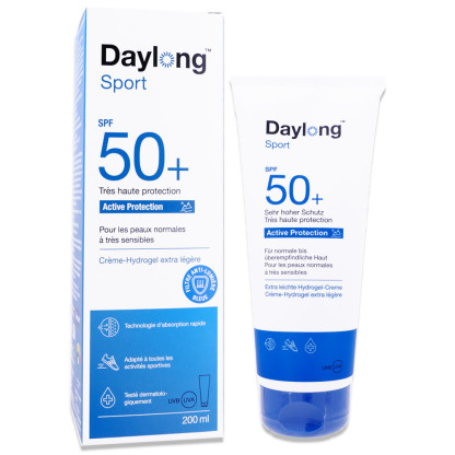 DAYLONG SPORT CREME-HYDROGEL SPF50+ 200ML est en vente en ligne sur le site de votre parapharmacie à prix discount, offrant une très haute protection solaire à large spectre pour les peaux normales à hypersensibles.