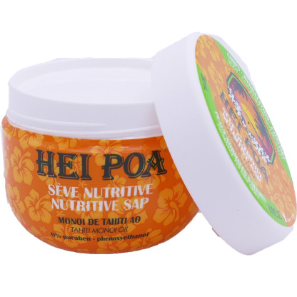 Depuis 40 ans, la petite bouteille culte de Monoï HEI POA répand son parfum exotique, véritable voyage sensoriel au cœur de la Polynésie. Le monoï est une huile extraite de la pulpe de coco dans laquelle ont macéré des fleurs fraîches de Tiaré. HEI POA propose un monoï de grande qualité, élaboré dans le respect et la tradition polynésienne, garanti par la mention « Appellation d’Origine ». Sève Nutritive Monoï de Tahiti HEI POA riche en monoï AO aux propriétés nourrissantes et hydratantes réconforte toutes les peaux même délicates. En hydratant et nourrissant intensément, le soin protège la peau en formant un film léger à sa surface pour la protéger de la sècheresse. Au moment du massage, Sève Nutritive se transforme en huile et en résulte un soin complet qui enveloppe la peau d’un parfum paradisiaque de Tiaré fruité pour un pur moment d’évasion. Sans paraben, sans phénoxyethanol.