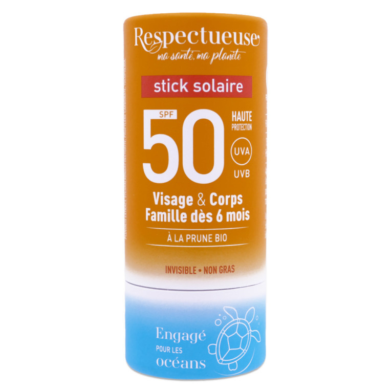 RESPECTUEUSE STICK SOLAIRE SPF50 18G est disponible en vente en ligne à prix discount sur Pharmashopdiscount.