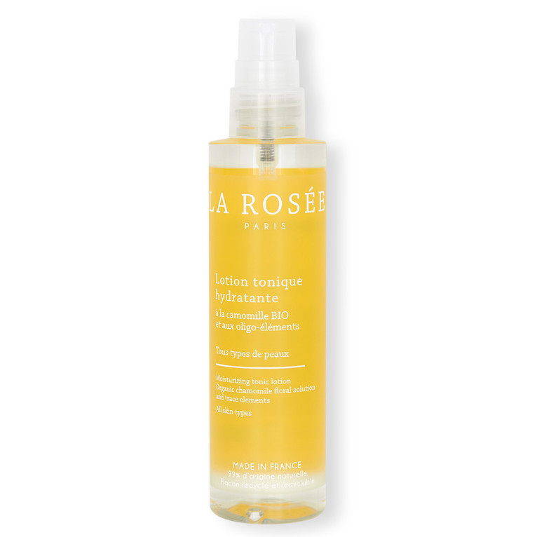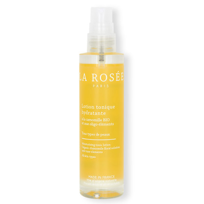 La gamme La Rosée souhaite épurer les formulations de ses produits en enlevant tous les ingrédients à polémique, faire les formules les plus naturelles possible, doser fortement nos actifs pour une efficacité maximale et préserver la planète du mieux possible. La Rosée Lotion Tonique Hydratante complète votre démaquillage et prépare votre peau à recevoir son soin quotidien. A base d'hydrolats floraux Bio de camomille et de rose, cette lotion apaise les peaux agressées dans la journée par la pollution, le tabac, le stress, le soleil... Concentrée en oligoéléments, La Rosée Lotion Tonique Hydratante recharge la peau en minéraux indispensables au fonctionnement des tissus. Pratique en spray, elle s'utilise également dans la journée, après une exposition prolongée au soleil ou tout simplement en action coup d'éclat immédiat.