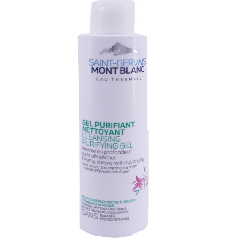 Le laboratoire SAINT-GERVAIS développe des produits dermo-cosmétiques élaborés avec de l’eau thermale de SAINT-GERVAIS Mont Blanc du massif alpin riche en minéraux aux propriétés réparatrices apaisantes, et cicatrisantes, pour répondre à tous les besoins des peaux même les plus fragiles. Le Gel purifiant Nettoyant sans savon qui délivre une mousse fine, composé de gluconate de zinc, d’un extrait actif d’épilobe des Alpes (issu du commerce équitable), de glycérine végétale et d’eau thermale pure Mont Blanc (67%) nettoie et élimine toutes les impuretés et cellules mortes de la peau, élimine l’excès de sébum, matifie, hydrate, et apaise la peau sensible mixte à grasse. Après le soin la peau est nette, fraîche, matifiée et douce. Testé sous contrôle dermatologique, hypoallergénique, sans paraben, sans phénoxyéthanol. Fabriqué en France