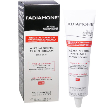 FADIAMONE Crème fluide Anti-âge des laboratoires Novomedis discount dans votre parapharmacie en ligne, le soin compensateur de fermeté pour peaux matures et sèches dès 40 ans.