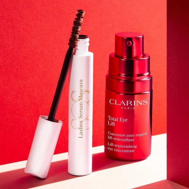 SOS Lashes Serum Mascara est aussi enrichi de l’incontournable LASH BOOSTING COMPLEX (composé de sphinganine et de panthénol), formulé par la Recherche Clarins pour allonger visiblement les cils et les fortifier.