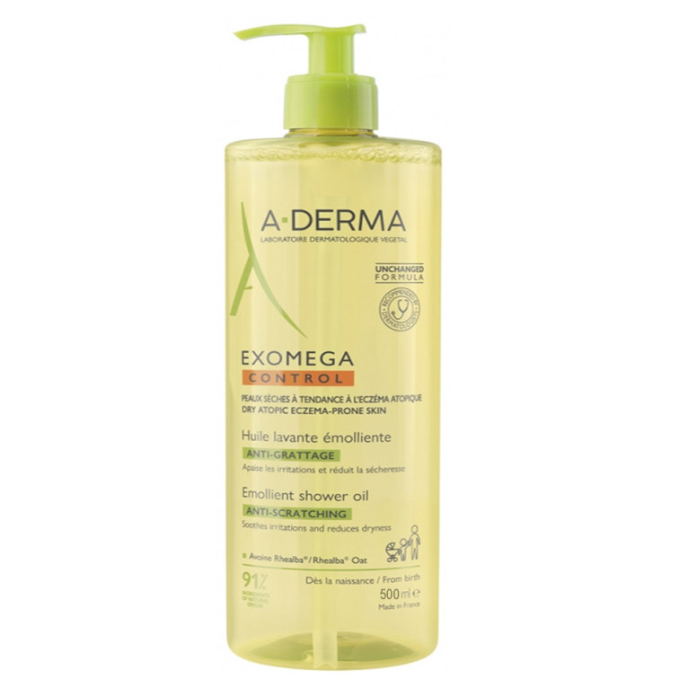 L’Huile lavante émolliente EXOMEGA CONTROL d’A-DERMA discount, un soin d’hygiène apaisant dans votre parapharmacie discount, qui nettoie, protège et apaise les peaux sèches à tendance atopique qui démangent avec grattage des nourrissons aux adultes. Visage corps