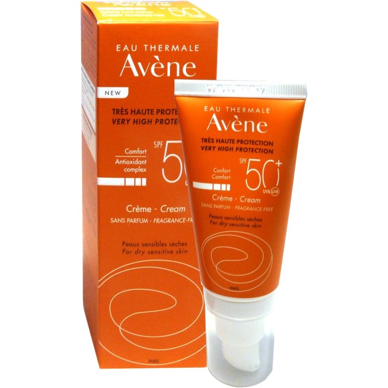 La gamme solaire des produits AVENE, prennent soin des peaux fragiles (sensibles et intolérantes) des petits et grands pour un maximum de protection contre le soleil par un complexe photoprotecteur breveté (SunSitive® protection) et l'eau thermale d'AVENE pour ses propriétés apaisantes. La crème Sans parfum, sans paraben ni parfum pour le respect des peaux sèches sensibles et intolérantes, protège très efficacement la peau sensible des rayons UVA/UVB longs et courts (SPF50+), préserve les cellules cutanées du vieillissement prématuré par ses actifs photoprotecteurs pour un minimum de filtres chimiques, ainsi qu'au Pré-tocophéryl qui est le précurseur photostable de la vitamine E antioxydant. L'eau thermale d'AVENE, quant à elle apaise la peau. Sa texture non grasse pénètre rapidement à l’application pour laisser la peau douce. La peau est douce, et hydratée. Résistante à l'eau et à la transpiration.