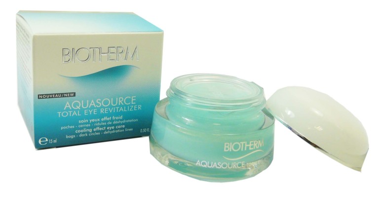 La gamme Aquasource des laboratoires BIOTHERM est composé de soins ultra-hydratants pour les peaux desséchées pour retrouver confort et souplesse par sa formule composée essentiellement d’Eau Cellulaire de Plancton de Vie hautement hydratante. La gelée Eye Revitalizer estompe les signes de fatigue (poches et cernes) en les éclaircissant et hydrate intensément et en profondeur l'épiderme pour lutter contre l’apparition des rides de déshydratation et réveiller le regard grâce aux micro-perles, à l’extrait de feuille sakura, de caféine, vitamine B3 et polymères. Dès la première utilisation, le regard est lumineux, frais et tonifié.