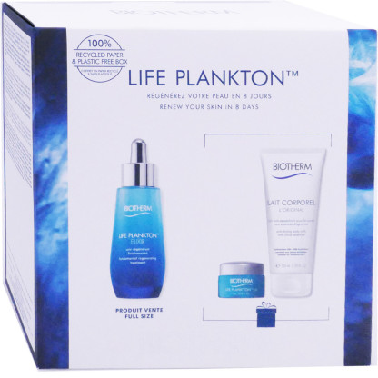 Le Coffret Life Plankton discount de BIOTHERM, un coffret qui regroupe 3 produits anti-âge et réconfortant dans votre parapharmacie en ligne à prix discount, pour redonner à tous les types de peaux matures du visage et du corps même sensibles fermeté, énergie et éclat : Life Plankton Elixir Sérum (50ml) ; Life Plankton Soin contour des yeux (5ml) ; Lait Corporel l’Original (100ml).