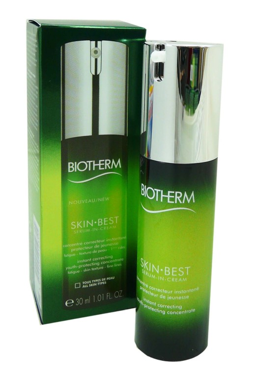 La gamme Skin Best des laboratoires BIOTHERM est composée de soins anti-âge et revitalisant pour lutter contre les premiers signes de l’âge (rides, grain de peau irrégulier,…) liés à la fatigue et aux agressions quotidiennes.Le Sérum In Cream est un soin qui allie l’effet d’un sérum et d’une crème en 1 seul produit. Composé de 2 micro-algues vertes : la spiruline (micro-algue bleue verte) qui est riche en protéines végétales (60%) et l’astaxanthine (algue rouge verte), il va agir pour diminuer les signes de l’âge en renouvelant et stimulant les cellules cutanées pour mieux les protéger face aux agressions extérieures quotidiennes, et redonner de l’éclat au visage. Sa texture fraîche et veloutée non grasse et non collante fond sur la peau pour la laisser confortable, souple et très douce comme du velours. Le grain de peau est lisse, comme si la peau était transformée ! Même après la journée, la peau est toujours aussi éclatante et lisse qu’au moment de l’application ! Grâce à ces 2 algues, en 1 mois le teint retrouve de l’éclat, il est unifié pour retrouver sa jeunesse, la peau est tonique.
