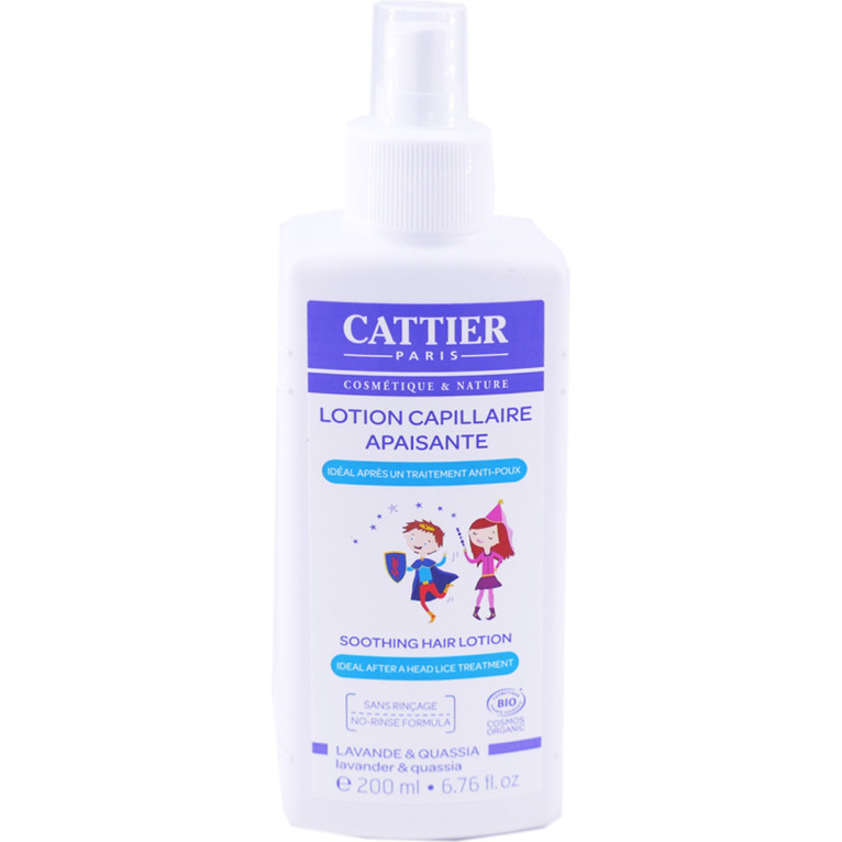 La Lotion Capillaire Apaisante Bio de CATTIER discount, le soin capillaire très doux dans votre parapharmacie à prix discount, qui apaise les démangeaisons du cuir chevelu et protège tout en douceur les cheveux des enfants. A partir de 3 ans.