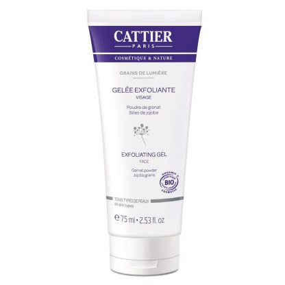 Gelée exfoliante Grains de lumière de CATTIER discount, le soin douceur dans votre parapharmacie en ligne à prix discount,q ui nettoie, exfolie, et redonne à la peau de l’éclat. Pour tous types de peaux Visage