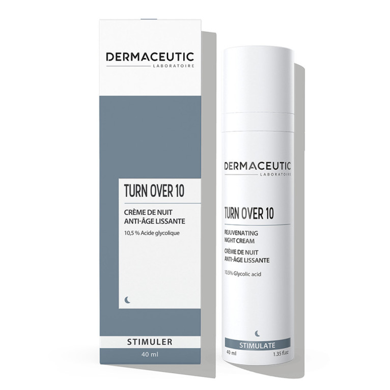 Le laboratoire DERMACEUTIC conçoit des produits pour réparer la peau et accélérer la régénération cellulaire après une intervention dermatologique ou esthétique. La crème de nuit TURN OVER composée d'acide glycolique, élimine les cellules mortes de la peau, stimule le renouvellement cellulaire, estompe les signes de l'âge (rides et ridules) tout au long de la nuit pour redonner dès le réveil une peau éclatante plus lisse, plus souple qui paraît plus jeune.