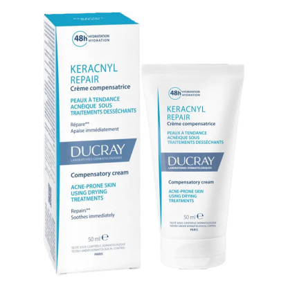 DUCRAY KERACNYL REPAIR CREME COMPENSATRICE 50ML, une crème réparatrice pour les peaux à tendance acnéique en vente en ligne sur le site de votre parapharmacie à prix discount. Visage