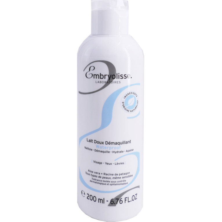 EMBRYOLISSE Lait Doux Démaquillant Waterproof le soin douceur pour nettoyer, démaquiller, hydrater et apaiser la peau du visage les yeux et les lèvres, tout type de peau, même sensible dans votre parapharmacie en ligne à prix discount.