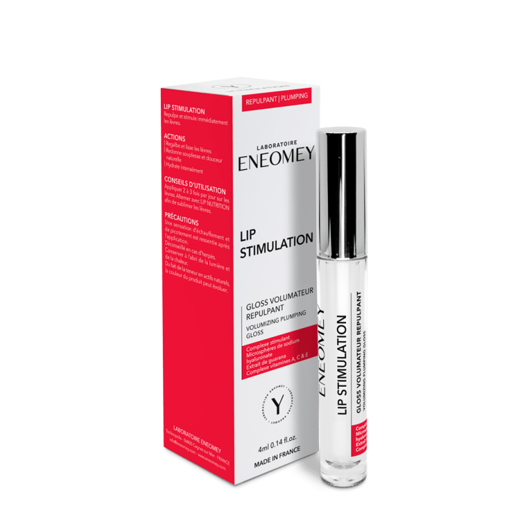 Lip Stimulation Gloss d’ENEOMEY est un gloss formulé à base d’un complexe stimulant, de microsphères d’acide hyaluronique, d’un extrait de guarana et d’esters de vitamines (A, C, et E). Le soin va atténuer l’apparition des signes de l’âge (rides et ridules) du contour des lèvres, repulper les lèvres en les protégeant des effets du temps, regalber en stimulant les lèvres pour leur redonne du volume, et hydrater intensément les lèvres pour les adoucir et les assouplir. Les lèvres retrouvent du volume. Le contour des lèvres est redessiné et le sourire est illuminé.