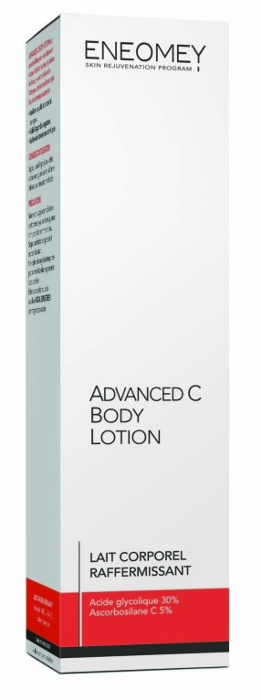 Issus de la cosmétologie dynamique, une alternative non invasive à la chirurgie esthétique, les produits mene&moy ENEOMEY sont composés de principes actifs fortement dosés et redoutablement efficaces sur les désordres cutanés liés au vieillissement cellulaires : la vitamine C stabilisée et l’acide glycolique. Advanced C body Lotion de mene&moy ENEOMEY est un soin concentré en acide glycolique et en ascorbosilane C, spécialement conçu pour agir efficacement sur le relâchement cutané des zones fragiles (sein, ventre, fesses) et les irrégularités de la peau comme les vergetures. Advanced C Body Lotion est idéal pour potentialiser les résultats d’une chirurgie esthétique.