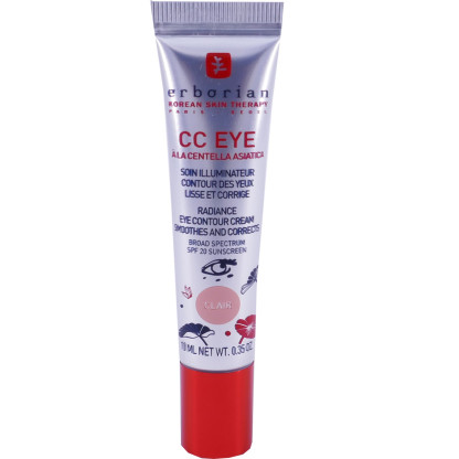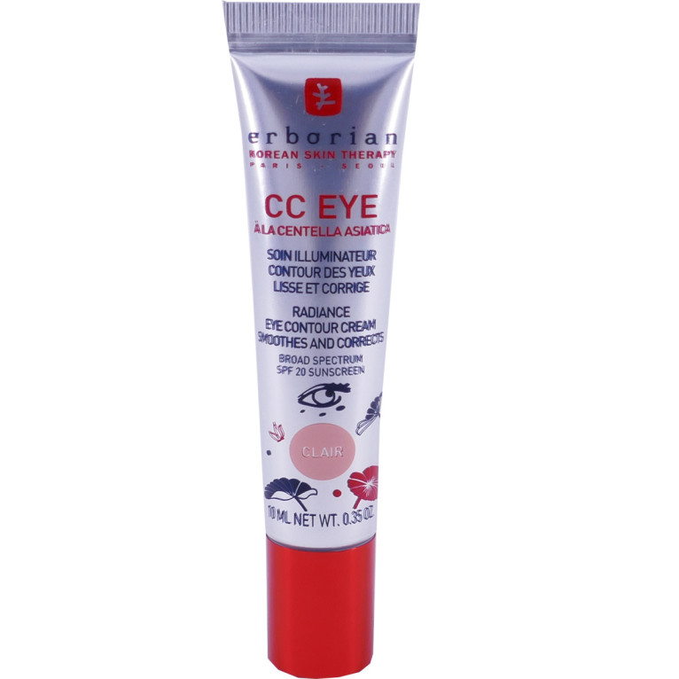 e e laboratoire ERBORIAN conçoit des produits cosmétiques inspirés des traditions coréennes contenant des herbes coréennes pour redonner à la peau de l’éclat. CC Eye à la Centella Asiatica est un soin correcteur et illuminateur de contour des yeux issu de la technologie coréenne qui va redonner au regard tout son éclat en l’illuminant. Ce soin innovant va estomper les signes de l’âge du contour de l’œil (rides, ridules) en lissant la peau, lutter contre l’apparition des signes de fatigue autour des yeux (poches, cernes), protéger la peau de l’apparition des signes de l’âge, raffermir et redonner de l’élasticité tout en hydratant intensément et apaisant la peau. Grâce à un complexe d’extraits de fruit de Tara (Caesalipinia spinosa), à l’algue rouge, à l’extrait d’herbe du Tigre (centella asiatica), aux pigments encapsulés qui se fondent sur la peau, et à un peptide anti-fatigue, la crème laissera un regard resplendissant de lumière et frais dès le matin et pour toute la journée avec une peau du contour des yeux lisse et douce ! Testé sous contrôle dermatologique et ophtalmologique