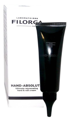 Le laboratoire FILORGA conçoit des produits dermo-cosmétiques dans le domaine de la médecine esthétique et plastique pour retrouver une peau jeune et belle. Hand Absolute est un soin qui estompe les rides et les taches cutanées sur les mains pour homogénéiser la peau, lisse, raffermit, repulpe, et nourrit la peau pour une peau plus souple grâce à un complexe anti-âge à base d’acide hyaluronique, de collagène et de lipoptide, ainsi que d’un extrait rare de lys de mer. Ce soin va également agir sur les ongles pour les renforcer et leur redonner de la brillance grâce à un booster de kératine. Sa texture non grasse pénètre rapidement et éveille les sens ! Jour après jour les rides et les taches sont nettement moins visibles, la peau est uniformisée et rajeunie.