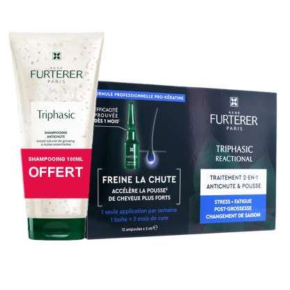FURTERER TRIPHASIC REACTIONNEL ANTI CHUTE 12X5ML + SHAMPOOING 100ML OFFERT est en vente en ligne sur le site de votre parapharmacie à prix discount.