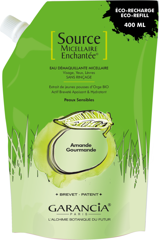 GARANCIA développe des produits dermo-cosmétiques uniques, qui allient ingrédients botaniques traditionnels, nouvelles technologies, rituels de beauté modernes et anciens, pour offrir aux femmes exigeantes des soins d’une rare efficacité, enveloppés d’un univers de magie. Source Micellaire Enchantée Douce Amande de GARANCIA, est le soin qui va transformer le démaquillage en pur moment de plaisir. Cette eau micellaire est spécialement conçue pour nettoyer et démaquiller les peaux sensibles : visage, yeux et lèvres, hydrater, apaiser et illuminer le teint. Sa formule magique associe un extrait de jeunes pousses d’Orge vertes BIO riche en polyphénols aux propriétés antioxydantes et un actif breveté hydratant et apaisant qui réduit significativement les sensations d’inconfort. Sans parabènes, sans phénoxyéthanol, 96,8 % d’ingrédients d’origine naturelle, testé sous contrôle dermatologique et ophtalmologique sur peaux et yeux sensibles dont porteurs de lentilles. Eco-recharge : écologique avec 91% de plastique en mois et économique, permet de remplir le flacon 100ml 4 fois.
