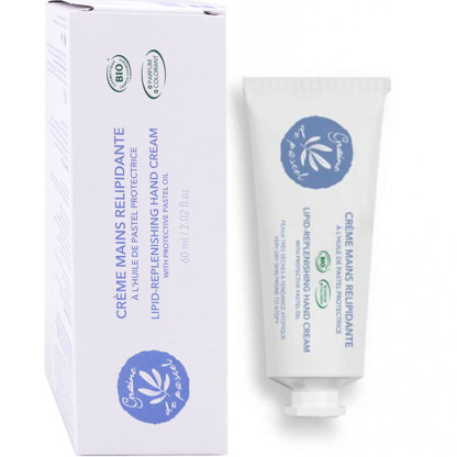 Crème Mains Relipidante Bio discount de GRAINE DE PASTEL, le soin naturel dans votre parapharmacie en ligne à prix discount, pour renforcer la barrière naturelle de l’épiderme, nourrir et apaiser les peaux très sèches à tendance atopiques.