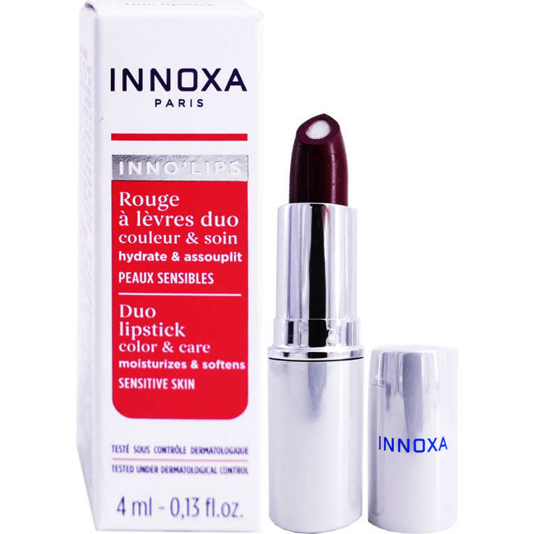 Le Rouge à lèvres Duo Couleur & Soin d'INNOXA discount, haute tolérance, couleur et protection dans votre parapharmacie en ligne à prix discount, pour un rouge à lèvres hydratant et sublimateur conçu pour le soin de toute les lèvres même sèches et sensibles. Couleur au choix. Couleur 008 Pourpre