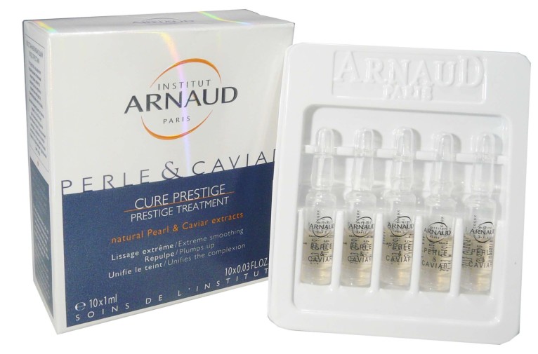 La gamme Perle et Caviar des Instituts Arnaud est composée de soins anti-âge et régénérant pour redonner de l’éclat à la peau jour après jour. La Cure prestige Perle et Caviar composé d’extraits de Perle de Culture et de Caviar, d’agents tenseurs végétal (Osilift), d’un activateur de longévité cellulaire (Longevicell®), d’acide hyaluronique, d’un complexe anti-âge ainsi que de glycérine, régénère l’épiderme afin de diminuer les signes de l’âge (rides et ridules) en les lissant, ainsi que les cellules cutanées, comble les rides installées, redonne de l’éclat au teint et hydrate intensément la peau pour redonner de la douceur, et apaise de tout inconfort. Jour après jour, la peau est plus lisse et plus souple, les signes de l’âge ont diminué, le visage retrouve de la clarté.