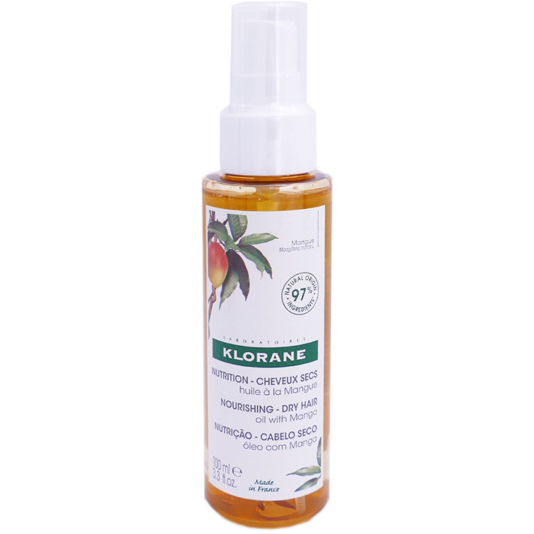Depuis 1966, les laboratoire KLORANE développent des produits cosmétiques authentiques, efficaces, simples et sûrs, formulés avec des actifs végétaux, issus de la passion du fondateur de la marque, Pierre Fabre, pour la nature et les plantes. La gamme capillaire offre un grand choix de produits conçus pour apporter une solution efficace et naturelle à tous les types de cheveux. La ligne au beurre de mangue propose des soins capillaires traitants spécialement conçus pour nourrir, hydrater, rétablir la douceur et la souplesse des cheveux secs, difficiles à coiffer. L’Huile à la Mangue Bi-phase Nutrition au Beurre de Mangue de KLORANE nourrit, protège, et hydrate en profondeur la chevelure sans l’alourdir, rétablit douceur, légèreté et éclat des cheveux. Non grasse, l’huile laissera sur les cheveux des notes gourmandes. Les cheveux seront éclatant. Très pratique, l’huile ne nécessite pas de rinçage. Testé sous contrôle dermatologique, sans silicone