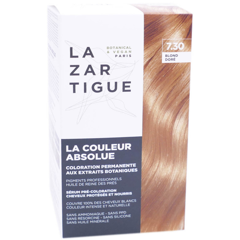 COULEUR ABSOLUE discount de LAZARTIGUE, la puissance végétale dans votre parapharmacie en ligne à prix discount, dans une coloration à la formule vegan pour assurer couleur intense, brillance et protection longue durée. Couleur Blond Doré 7.30