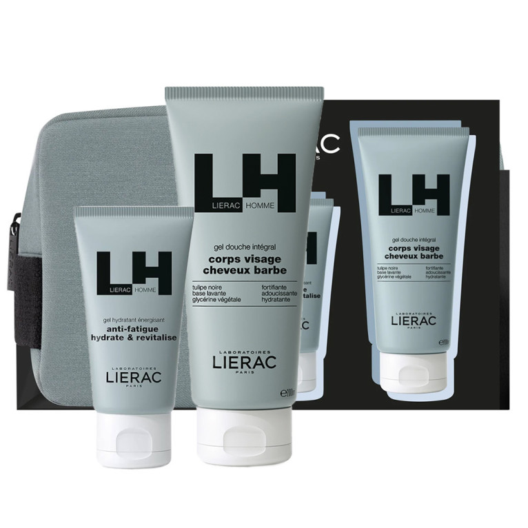 LIERAC HOMME COFFRET GEL HYDRATANT + GEL DOUCHE + TROUSSE
