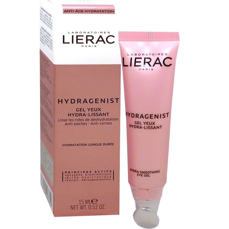 LIERAC est la première marque française dermo-cosmétique spécialisée dans la correction du vieillissement et des désordres cutanés, et instauratrice de la « cosmétique technique » qui allie plaisir des sens et efficacité. La gamme HYDRAGENIST est constituée de produits inspirés de la technique esthétique d’oxygénation tissulaire qui vise à pulvériser de l’oxygène, de l’acide hyaluronique et des vitamines dans l’épiderme pour repulper la peau, rétablir sa fraicheur et illuminer son teint. A la texture active gel frais transparent riche en NMF hydratant et lissant, le Gel Yeux Hydra-lissant est spécialement conçu pour désaltérer intensément les peaux assoiffées. Sa formule innovante, associe le complexe Hydra O2 composé d’oxygène biomimétique, d’acide hyaluronique, de vitamines C, E, B5 et B6, à un extrait décongestionnant, pour hydrater intensément l’épiderme, protéger et repulper la peau, lisser les rides et ridules du contour des yeux, tonifier la peau, défatiguer le regard en estompant les poches et cernes autour des yeux, et offrir de la fraîcheur et une nouvelle jeunesse au regard. Sans parfum